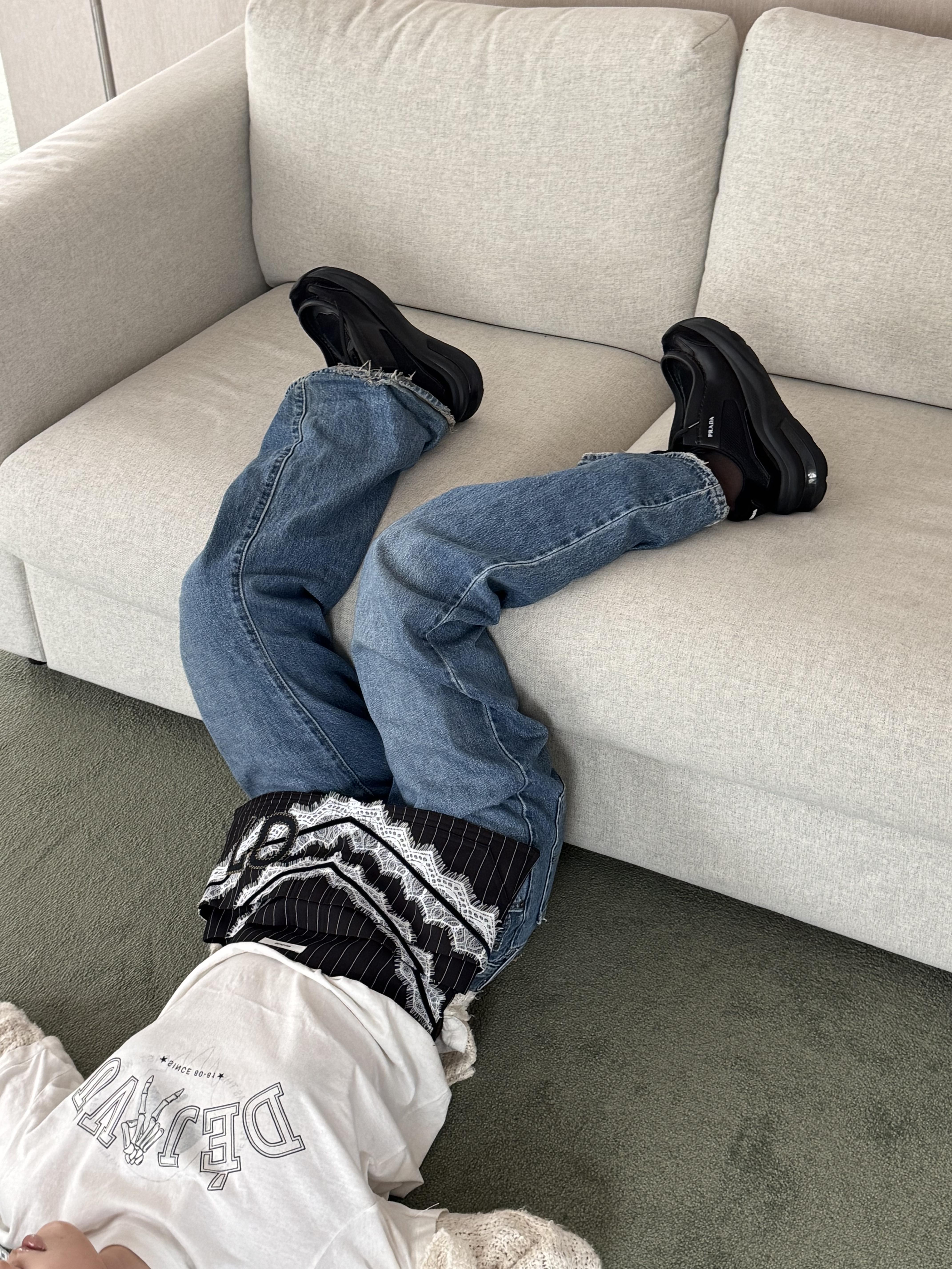 스트라이프와 레이스를 조합해 사랑스러운 오피스 무드를 담았습니다.